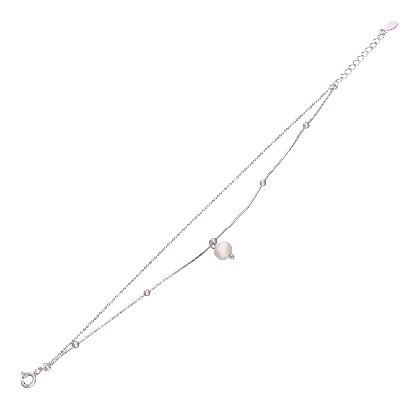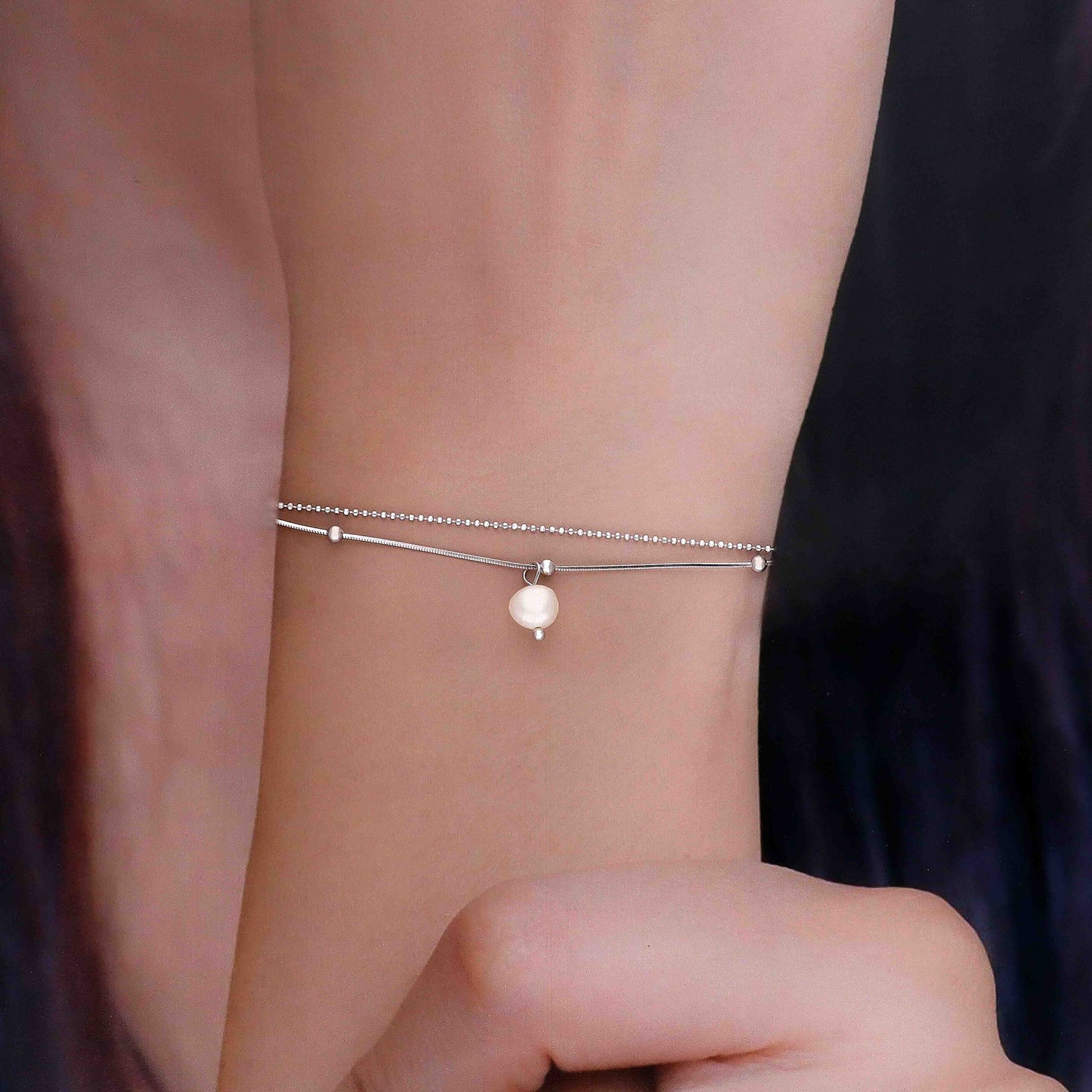 Elegant Pearl Layered Charm Silver Bracelet