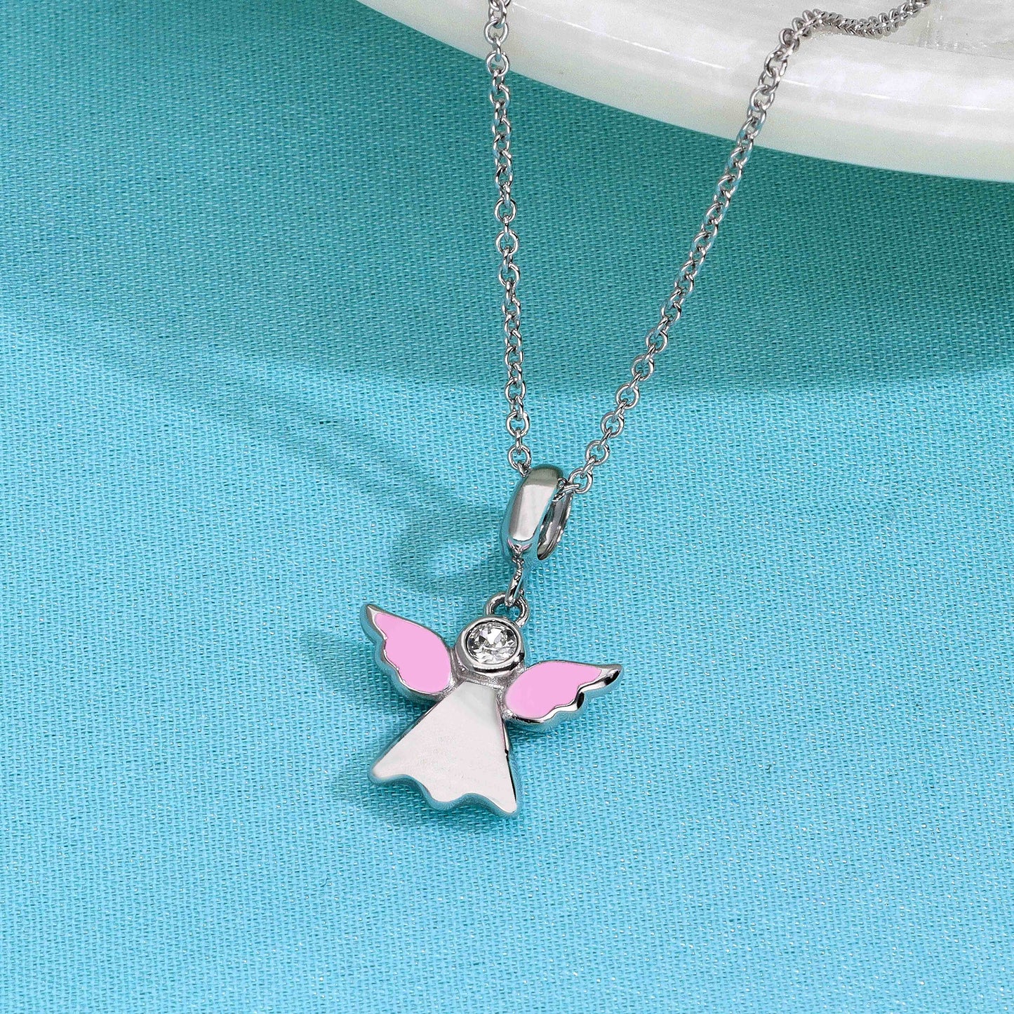 Sterling silver necklace with enamel crown pendant