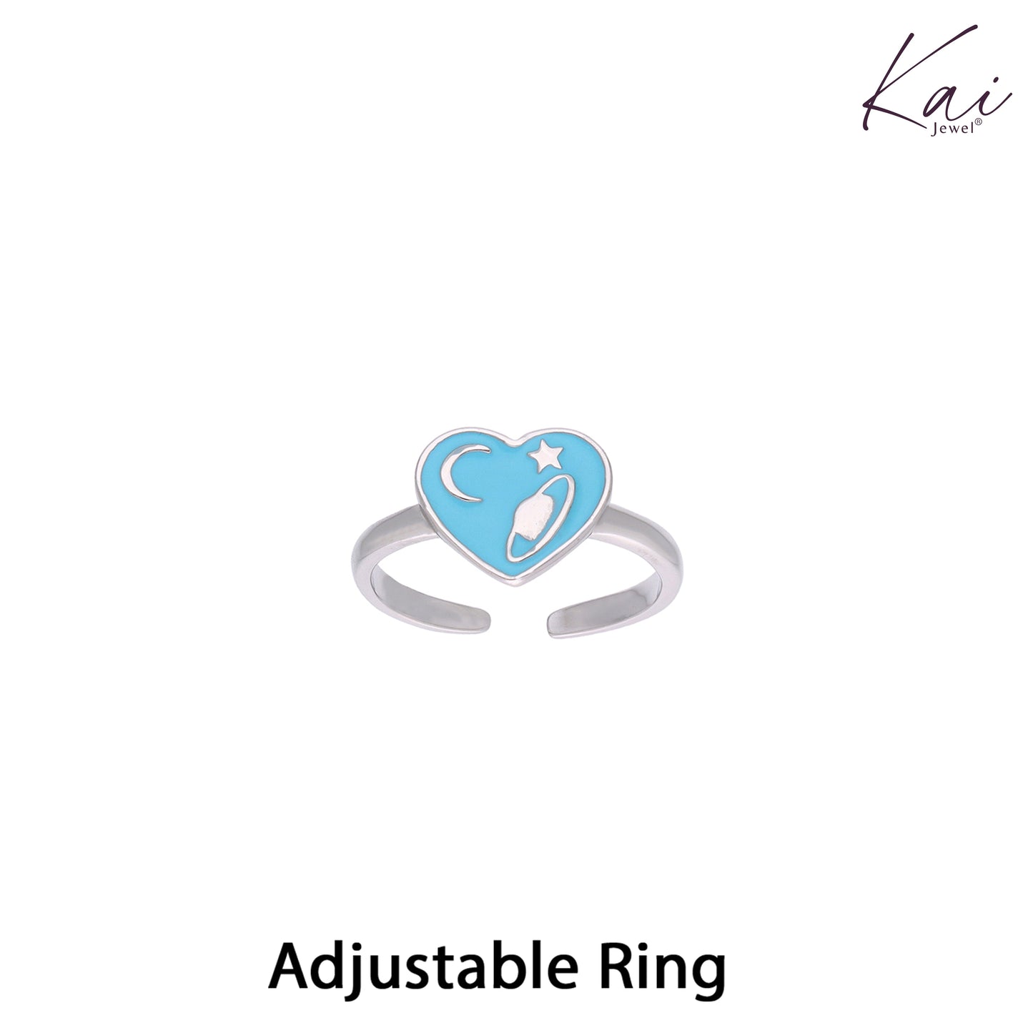 Children's Celestial Blue Heart Silver Ring