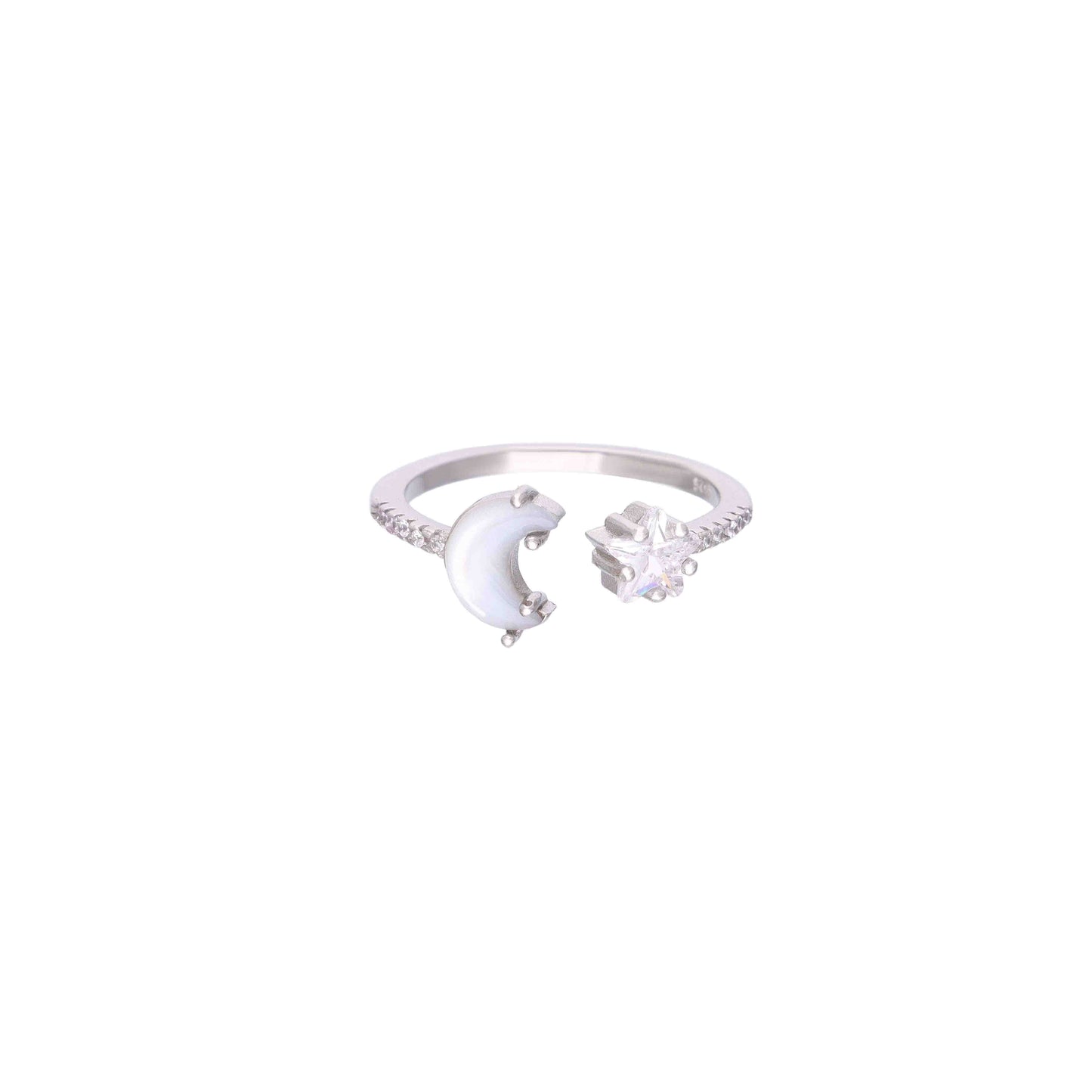 The open band design ensures comfort and flexibility, making it a versatile accessory for daily wear or special occasions. Perfect as a gift for astrology lovers, a unique promise ring, or a chic stacking piece, this celestial-inspired ring adds a dreamy sparkle to your jewelry collection