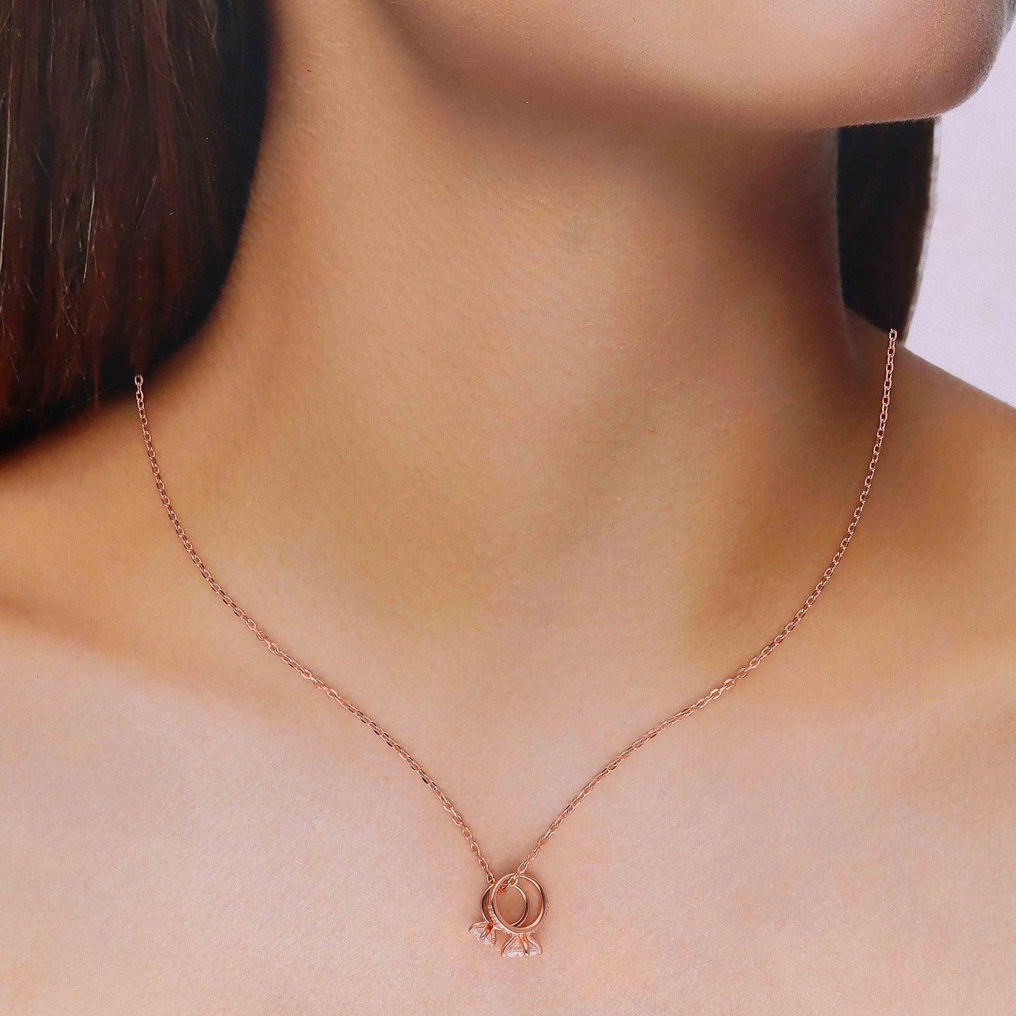 Regular price Rs. 4,391.00Mark life's most meaningful moments with this refined double-ring necklace ensemble. Comprising an engagement ring and coordinating wedding band, both feature luminous round-cut diamonds set within meticulously crafted sterling silver. The expert design balances intricate detailing with understated sophistication, creating pieces that transcend trends. The accompanying silver chain necklace offers flexibility—wear your rings as a pendant or display them separately. Whether commemorating an engagement, wedding, or significant milestone, this curated set represents enduring commitment with polished elegance and lasting value.