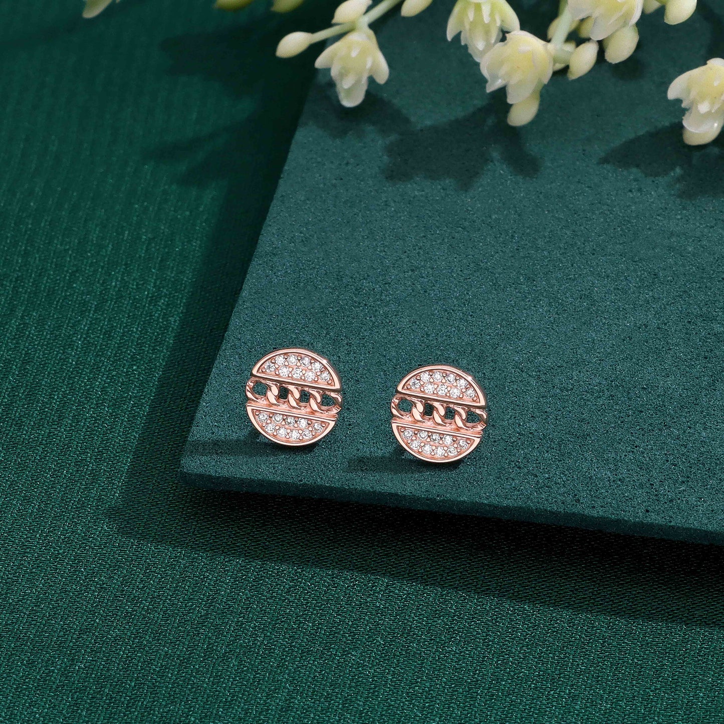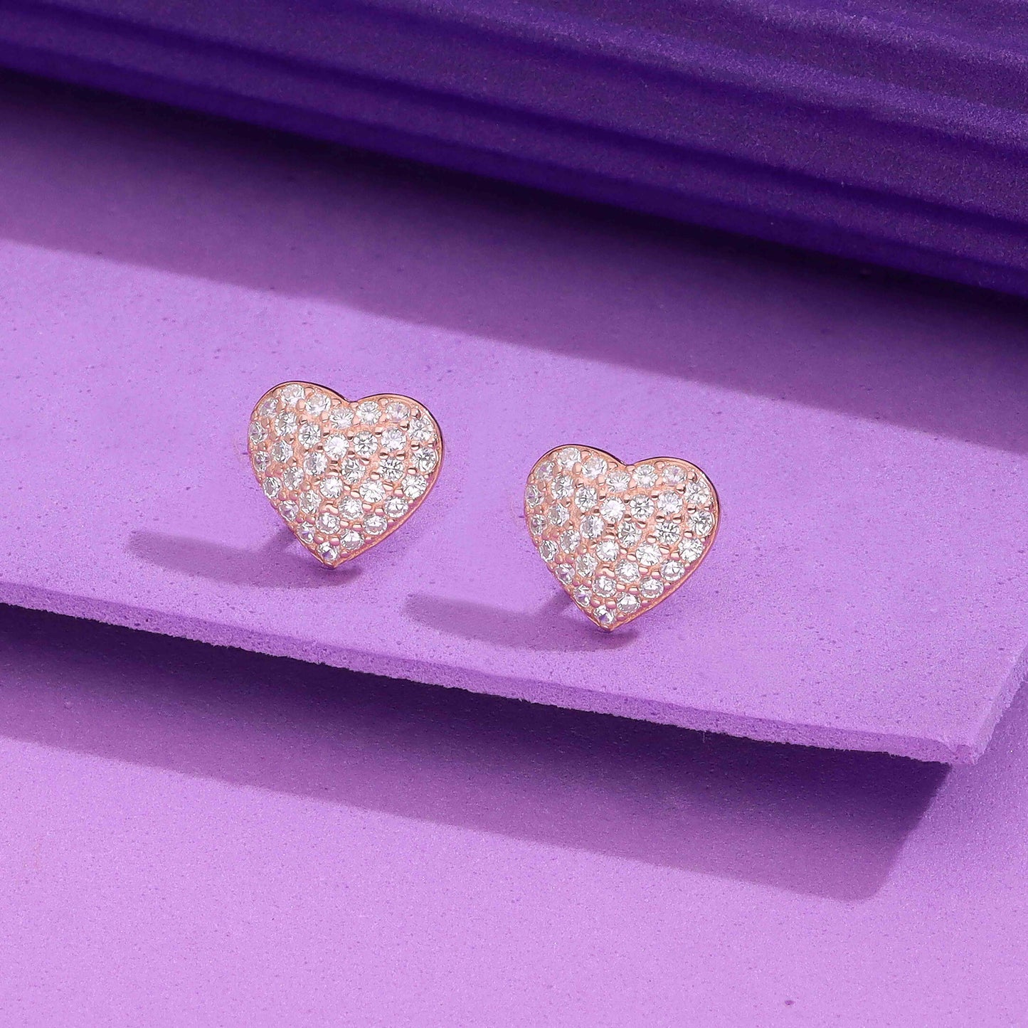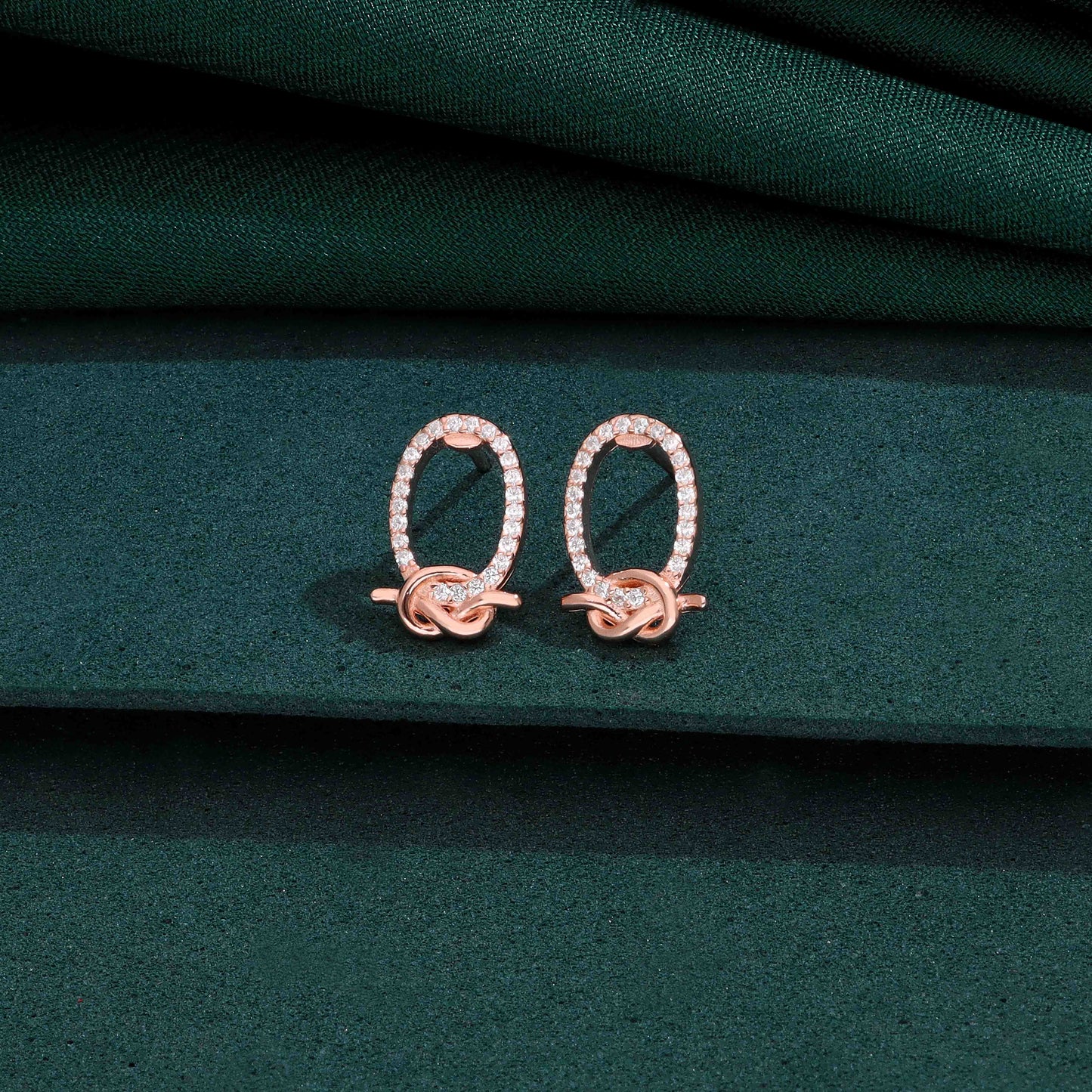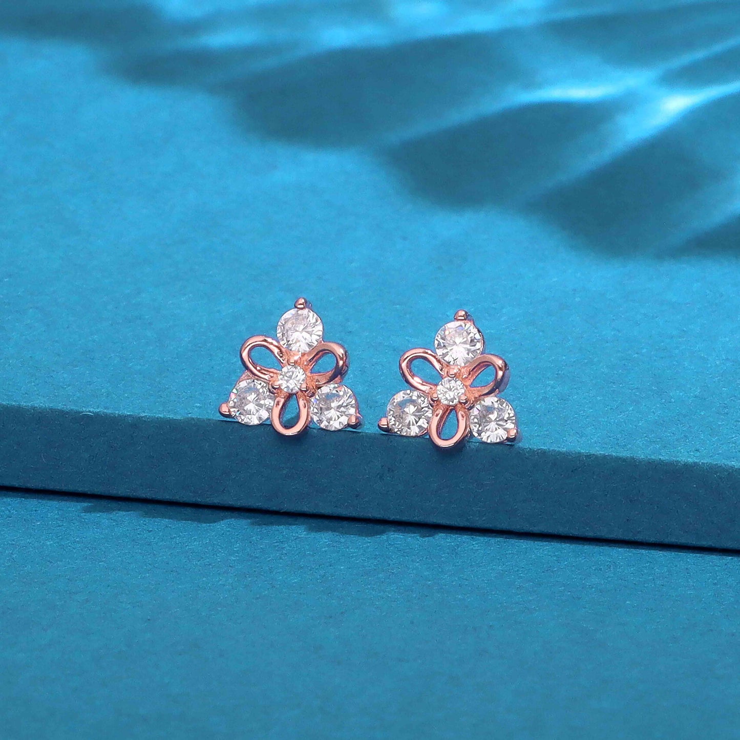 Rose gold teardrop stud earrings with round and baguette cubic zirconia stones