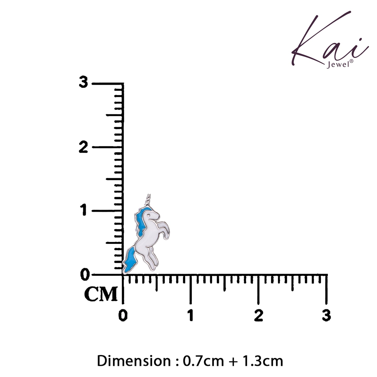 Pair of kids’ unicorn stud earrings with blue and white enamel.