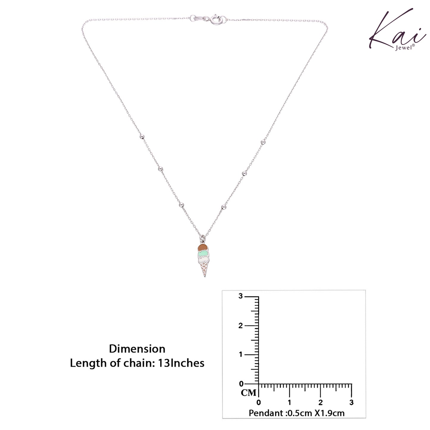 Kids Ice Cream Silver Chain Pendant