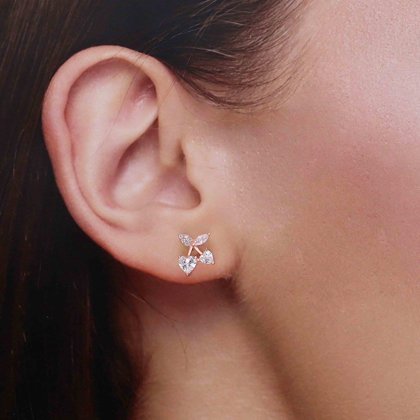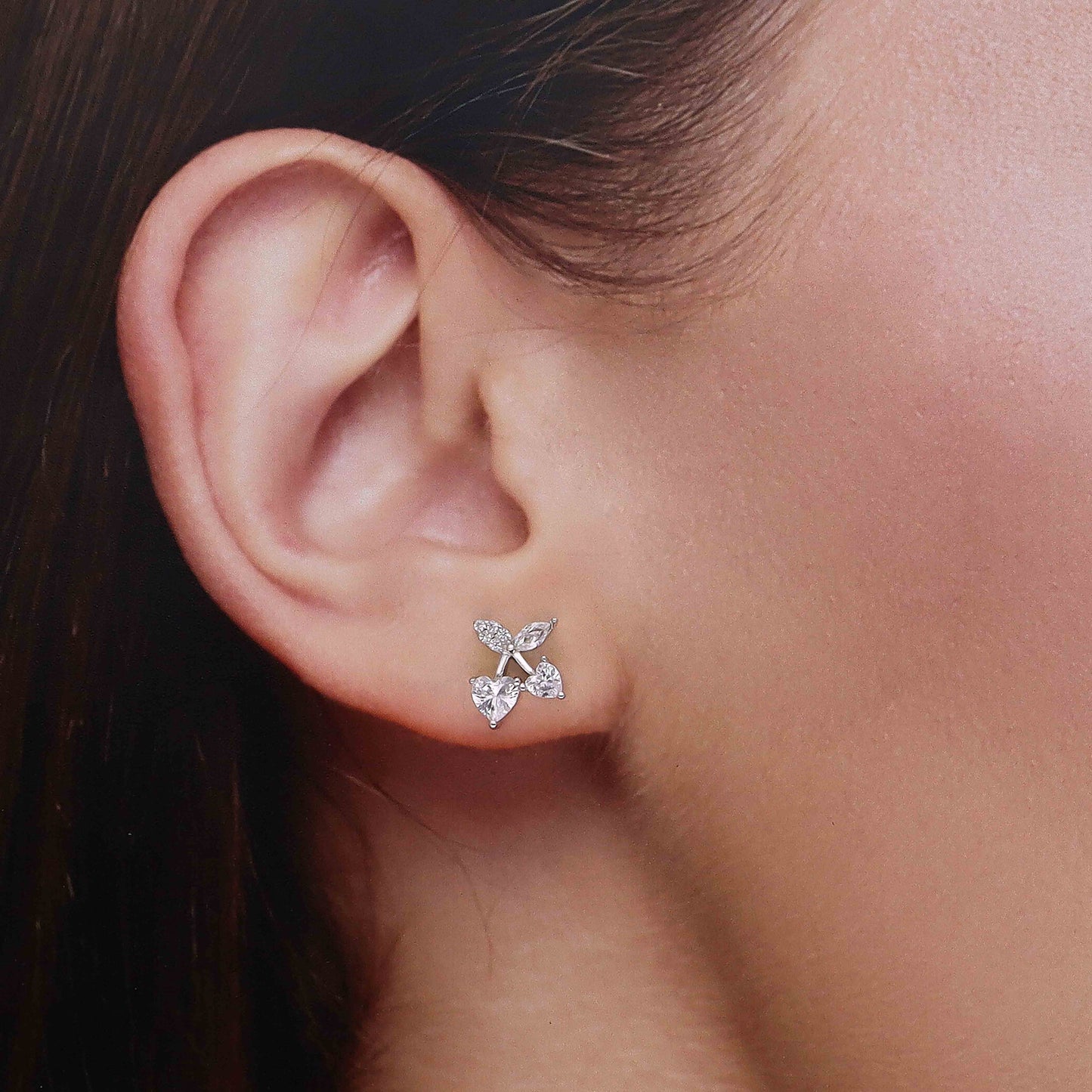 Regular price Rs. 2,423.00Elevate your jewelry collection with these exquisitely crafted cherry-inspired cubic zirconia stud earrings. Featuring heart-shaped and marquise-cut stones arranged in an elegant fruit motif, these pieces seamlessly blend sophistication with playful charm. Set in premium sterling silver with a lustrous polished finish, they deliver the radiance of fine jewelry at an exceptional value. Engineered for comfort and versatility, these lightweight earrings transition effortlessly from daily wear to special occasions. The brilliantly faceted cubic zirconia stones capture and reflect light with remarkable clarity, while their timeless design makes them ideal for gifting, layering with minim