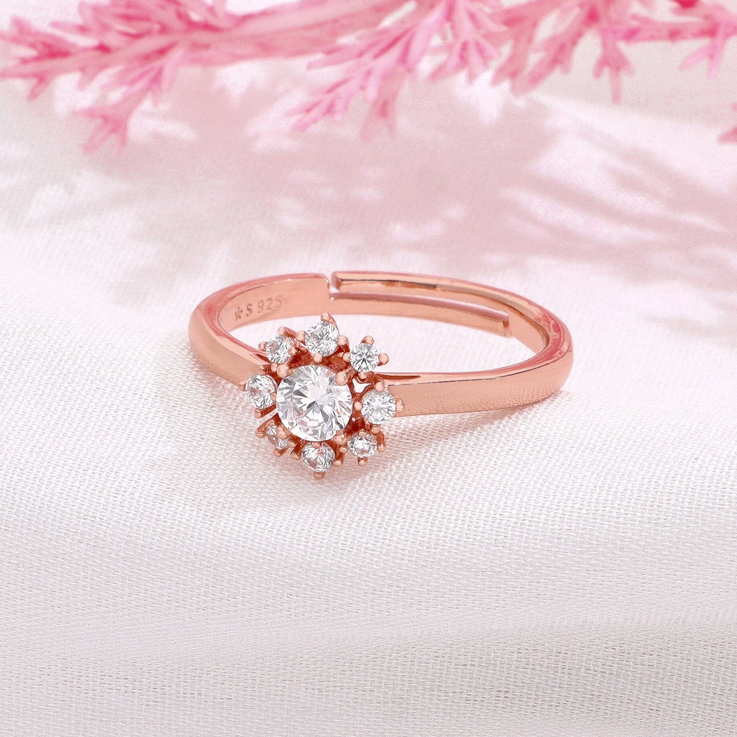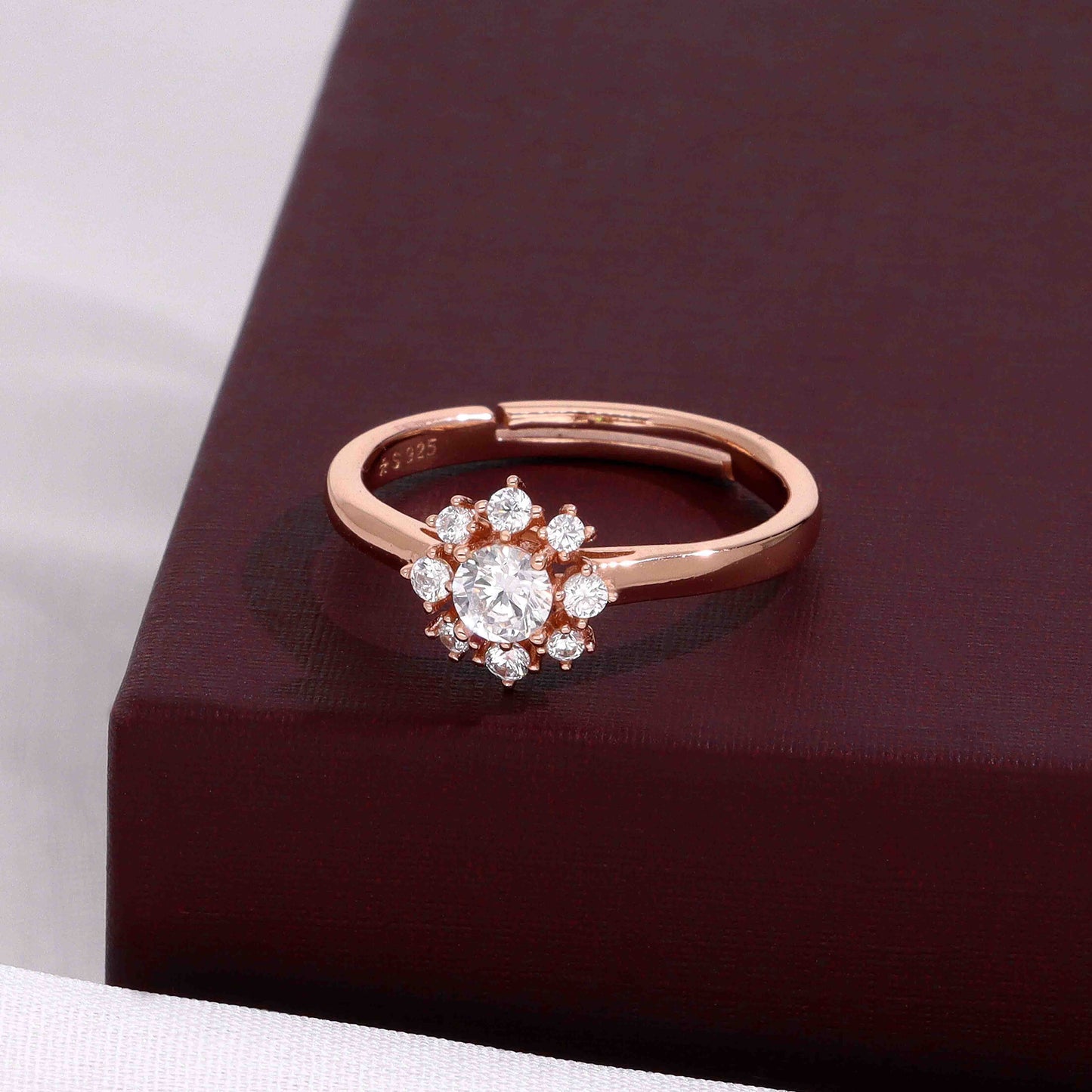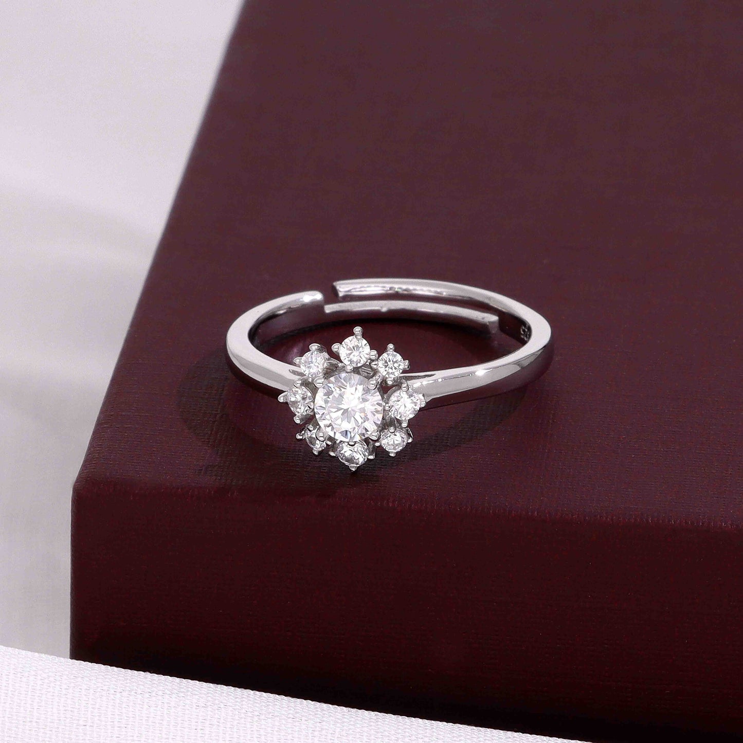 Regular price Rs. 1,739.00Elevate your jewelry collection with the Sparkling Floral Solitaire Adjustable Silver Ring, crafted in genuine 925 sterling silver. Featuring a radiant round-cut cubic zirconia centerpiece encircled by smaller crystals, its floral motif exudes refined elegance. The adjustable open band offers a tailored, comfortable fit for any finger size, combining style with practicality. Ideal for everyday sophistication or memorable occasions, this ring delivers enduring brilliance and subtle luxury, making it a thoughtfully exquisite gift or a timeless self-indulgence.