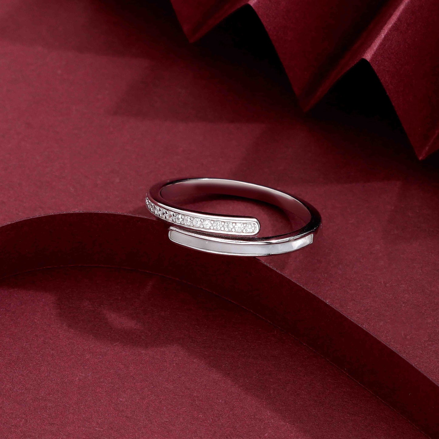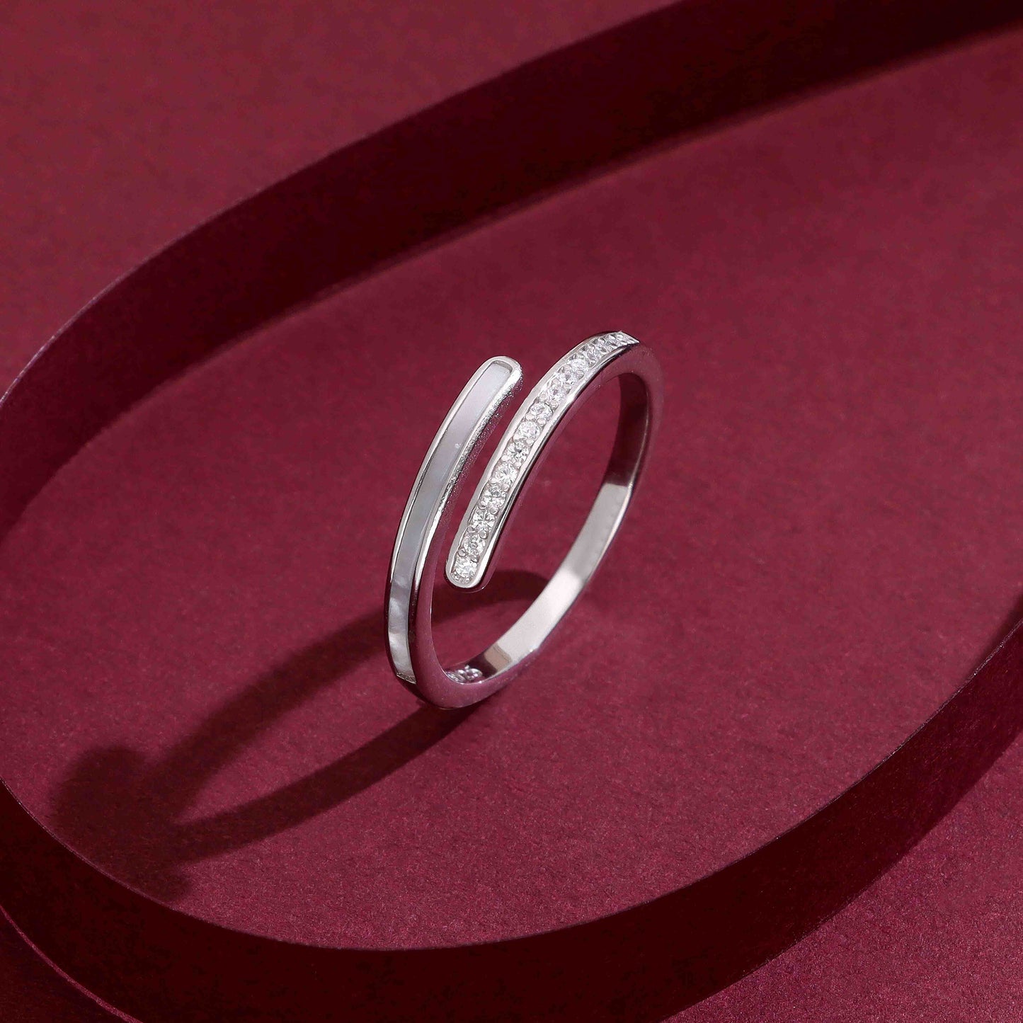 Regular price Rs. 1,529.00Add a refined touch to your jewelry collection with the Radiant Love Open Curve Sterling Silver Adjustable Ring. Expertly crafted from premium sterling silver, this minimalist open band showcases a sleek wrap design, partially set with sparkling cubic zirconia stones for a subtle yet captivating shine. Its adjustable structure ensures a perfect fit, combining elegance and comfort, making it ideal for everyday wear or special moments where understated luxury is desired.