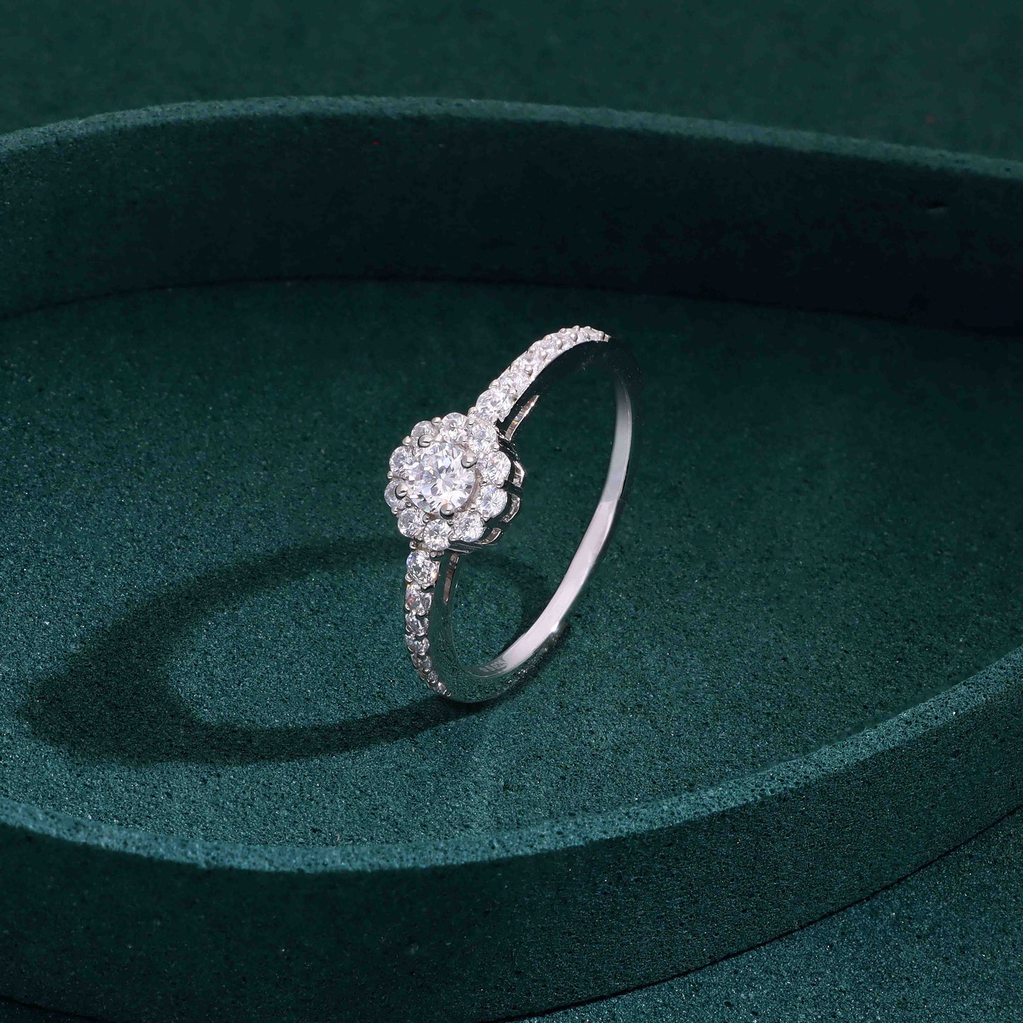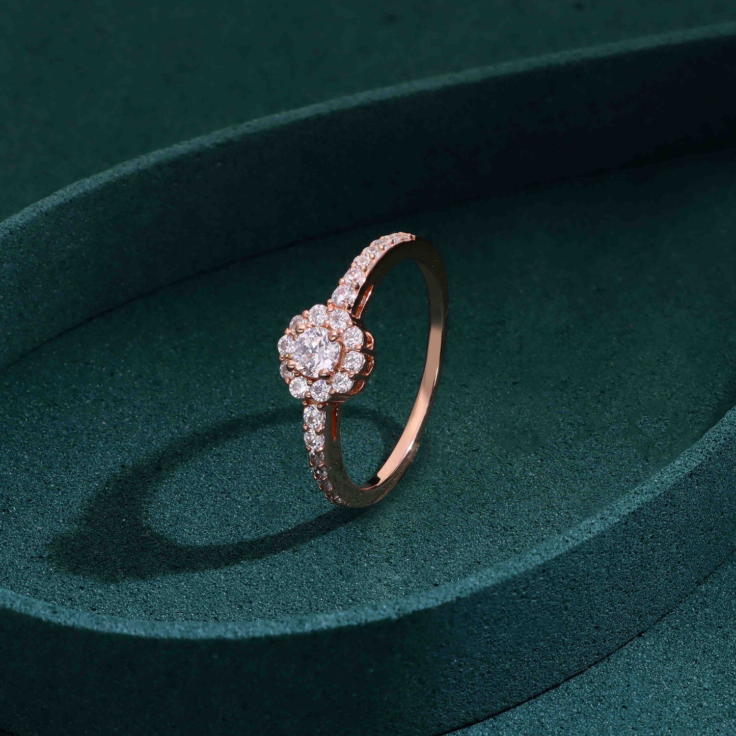 Regular price Rs. 1,619.00This Ring showcases a stunning round-cut center diamond surrounded by a pavé-set diamond halo. The slender band, also accented with pavé diamonds, maximizes brilliance and creates a sophisticated sparkle. Expertly crafted in premium this ring blends classic beauty with modern design, making it an exceptional choice to symbolize enduring love and commitment. Ideal for engagements, anniversaries, or significant Milestones.